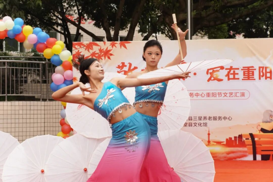 ● 舞蹈《竹林晨语》轻盈灵动,仿佛将清晨竹林的清新与生机带入了现场,赢得了老人们的阵阵掌声。