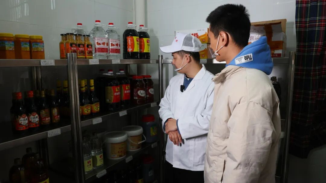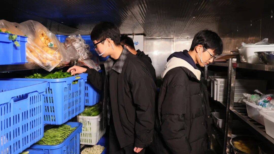 在此过程中,学生们也一改往日的“食客”身份,在食品仓库,仔细查看了米、面、油、调味品等原材料的生产日期和储存条件,确保所有食材来源可溯、品质新鲜。