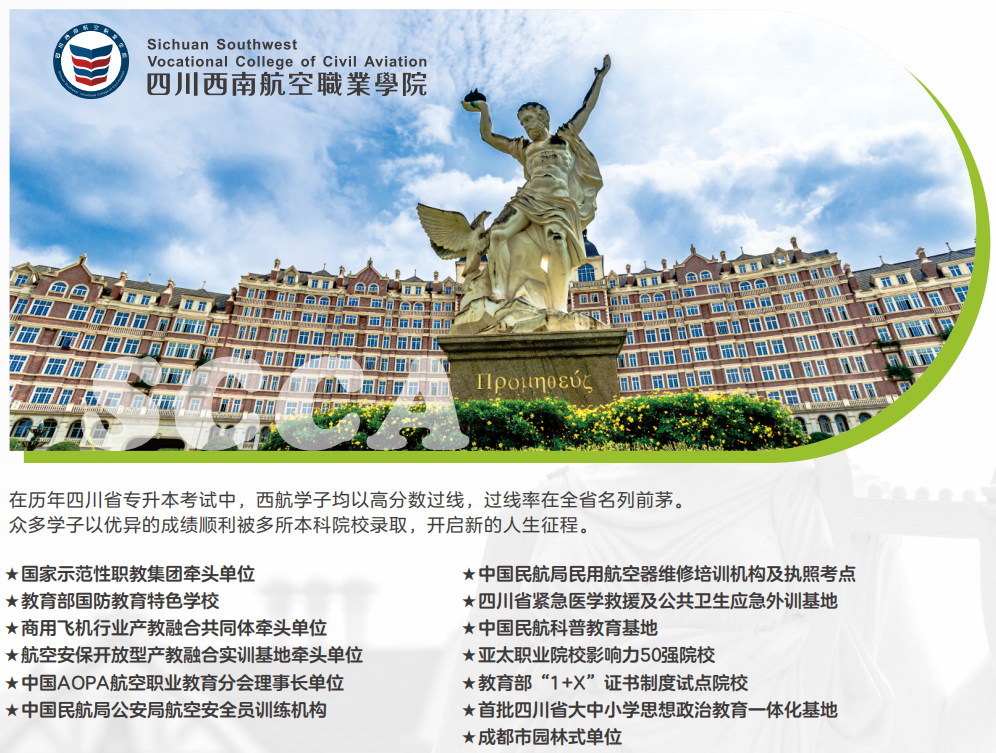 1.完成中职学业后参加四川省单招考试,可对口升入到四川西南航空职业学院、绵阳飞行职业学院等全日制高职院校,完成三年大学专科阶段学习后,可获取全日制专科学历;