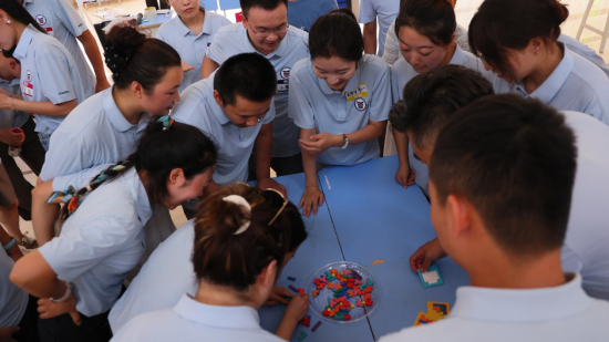 “达芬奇密码” 考验策略与记忆,各组队员有序接力翻牌,在 0-15 的数字排序中争分夺秒;“拼图接力赛” 里,7 人一列依次奔赴拼图区,每一块拼图的精准对接都凝聚着团队的力量;