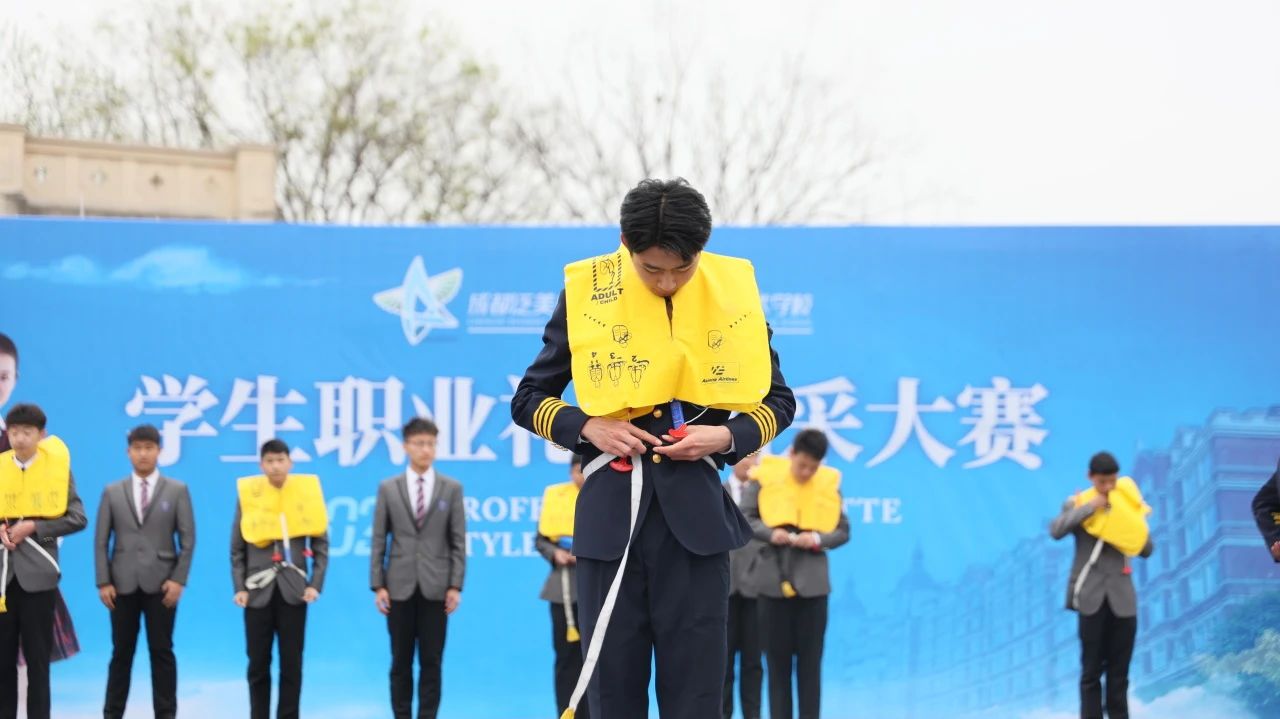 右手45度角精确指向应急出口、救生衣穿戴动作迅速完成、微笑得体而自然......力求让每一个动作都成为刻在肌肉中的记忆。他们严谨的工作态度和精湛的技能水平,赢得了现场观众的阵阵掌声。