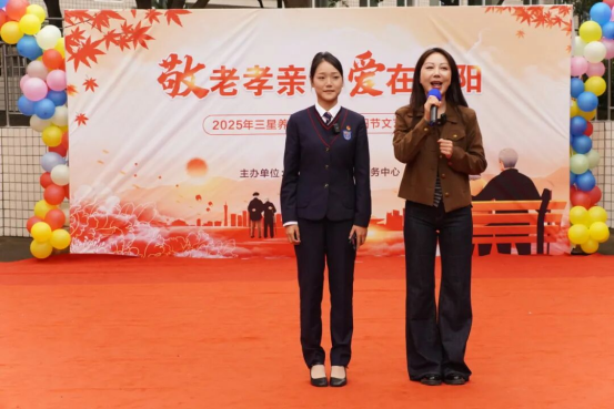 随后,唐昕校长表达了学校对老人们的深切关怀,并阐述了敬老爱老在育人工作中的重要意义;黄晓芸同学则代表全体学子,向爷爷奶奶们送上诚挚的祝福。亲切的话语饱含着对长辈的尊敬与关爱,令现场暖意融融。