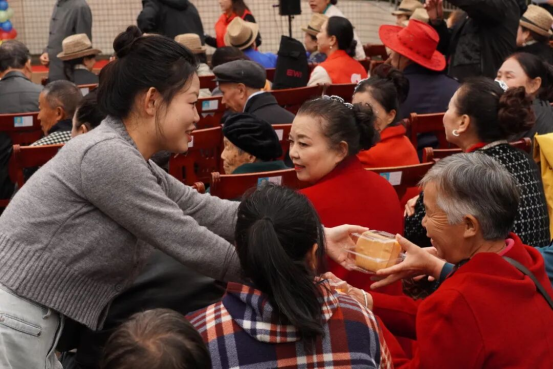 演出结束后,师生们将特意准备的定制版无糖暖心糕点逐一送到每一位老人手中。这份贴心的礼物,充分考虑到了老人们的健康需求,甜在口中,更暖在心里。