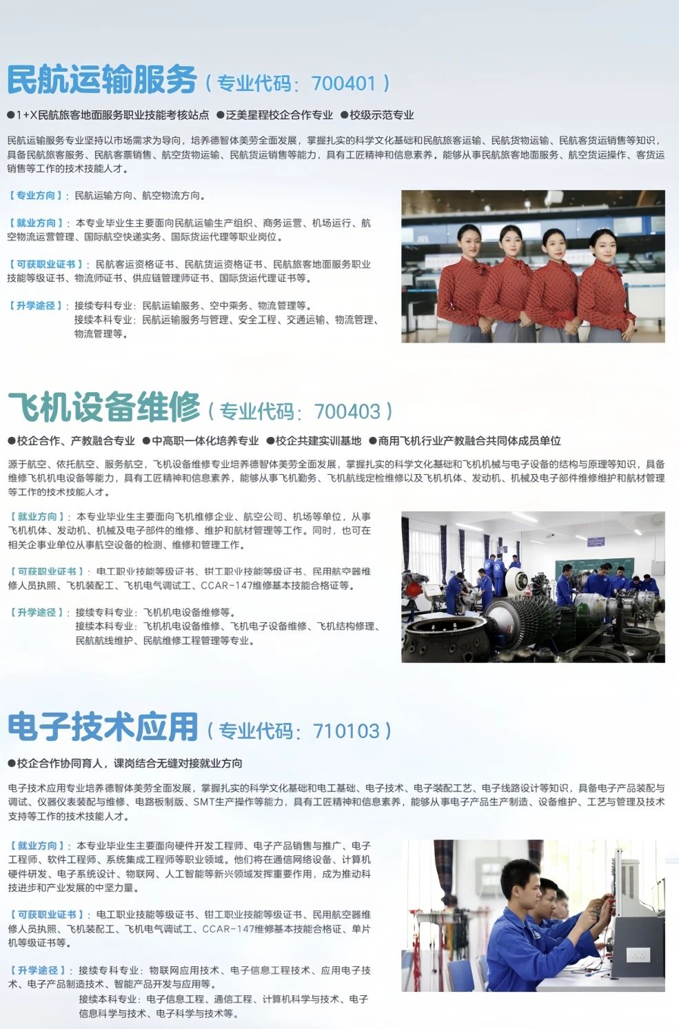 1. 完成三年学业后参加四川省单招考试,对口直升四川西南航空职业学院、绵阳飞行职业学院等统招大学专科院校,对口升学率近100%;完成三年大学专科阶段学习后,获取国家计划内统招大学专科学历,通过当年专升本考试或自考专升本,获取大学本科学历。