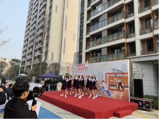 活动现场,“蓉聚英才 2025 驿动武侯” 主题背景板前,我校学子身着统一校服,以整齐划一的动作、自信昂扬的笑容完成开场舞表演,动感的旋律与青春的姿态瞬间点燃现场氛围,为青年人才驿站的全新开业拉开温馨序幕。