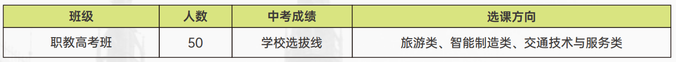 2. 中考文化课成绩上当地普通高中分数线,或入学后选拔考试文化课成绩符合学校职教高考班分数线